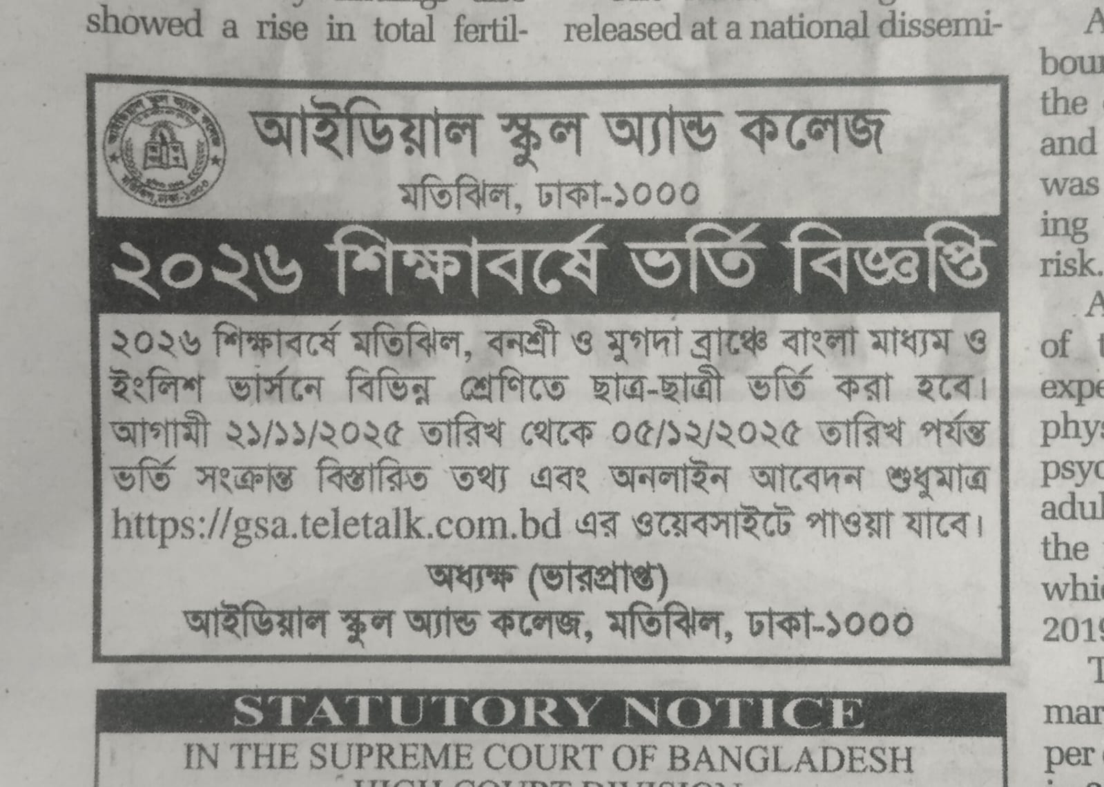 Ideal School & College, Motijheel, Dhaka