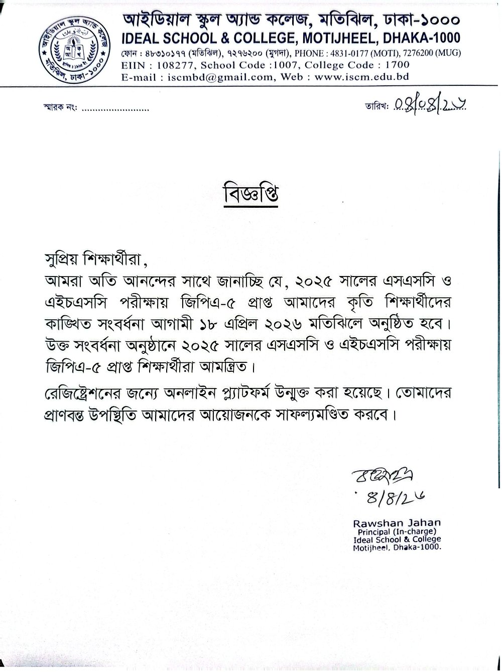 জিপিএ-৫ সংবর্ধনা - ২০২৬