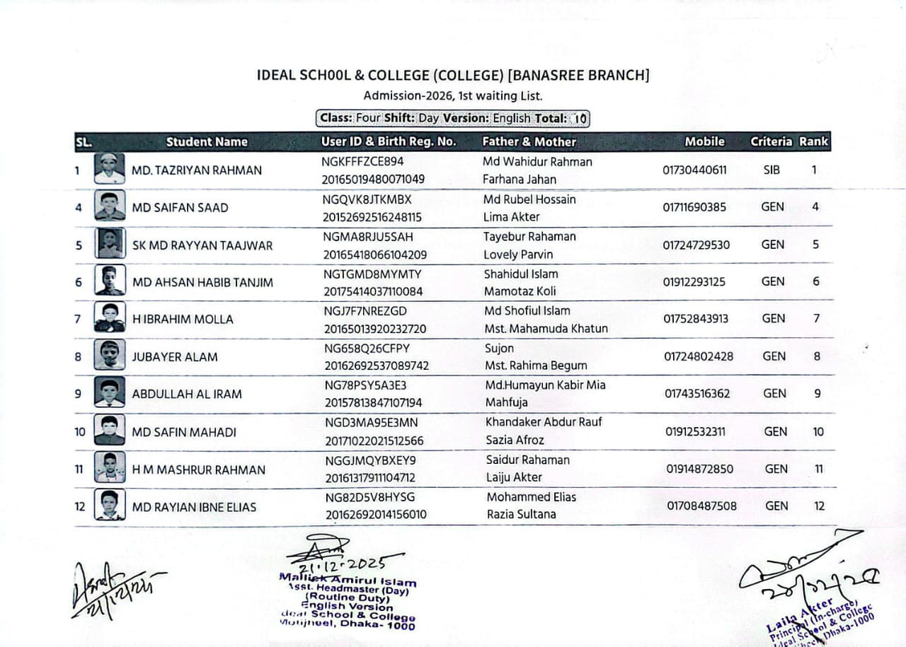 অপেক্ষমান তালিকা (চতুর্থ পর্যায়) - 1/2